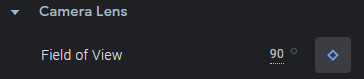 Field of viewを追加するとCamera Lensの箇所にField of viewが表示されているので90と入れましょう。(よく360度映像を作っている人はわかるかもしれませんが、要はCube Mapを作っているだけです。)
