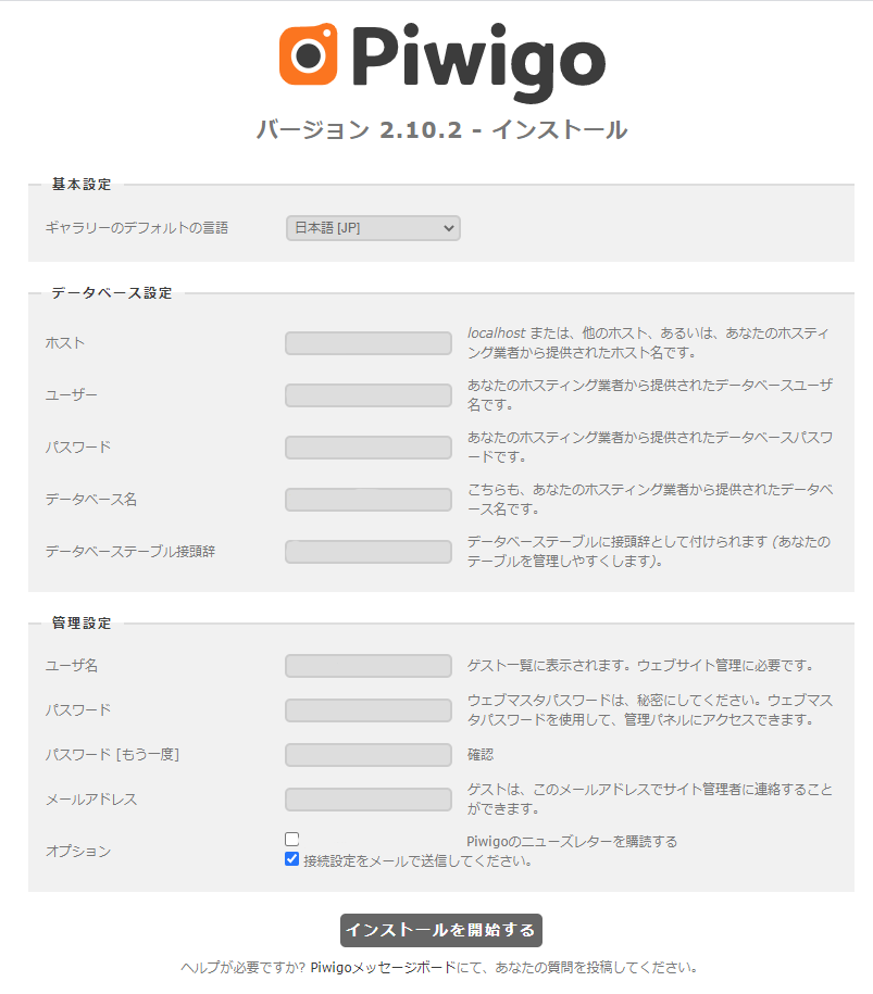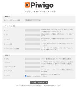 インストールされたディレクトリにアクセスすると、設定画面が表示されるので、設定をしていきます。